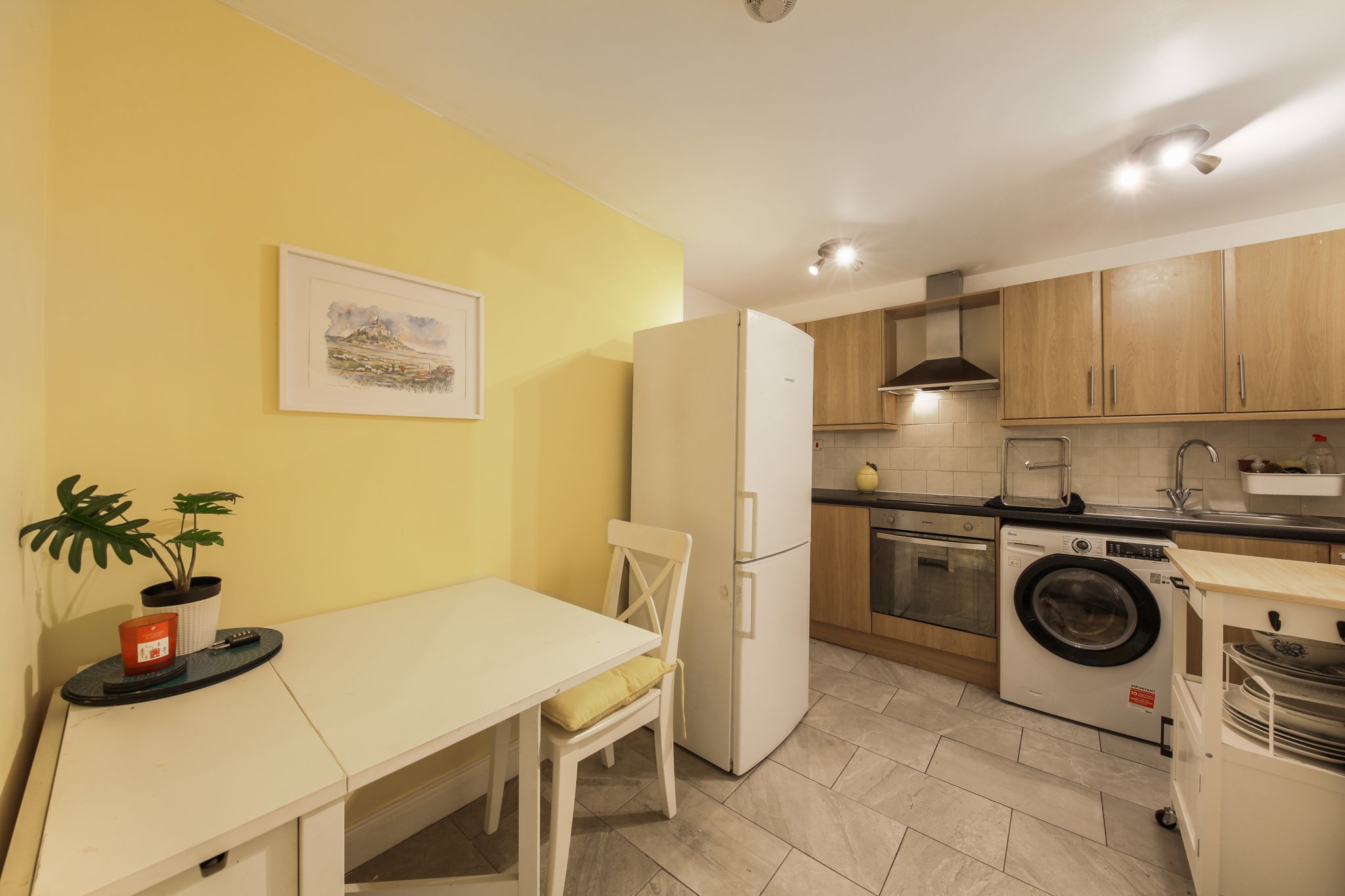 After a long day, unwind in style with a proper soak in the bath, a surprising luxury not found in all flats and enjoy the communal garden on warmer days, complete with a bit of local history attached. The location has been perfect for living life to the fullest; within a 10-minute stroll you'll find a park with tennis courts, a bustling food market, a cinema, trendy restaurants, several gyms and an array of great coffee shops. Two train stations are also close by for when you need to venture further.