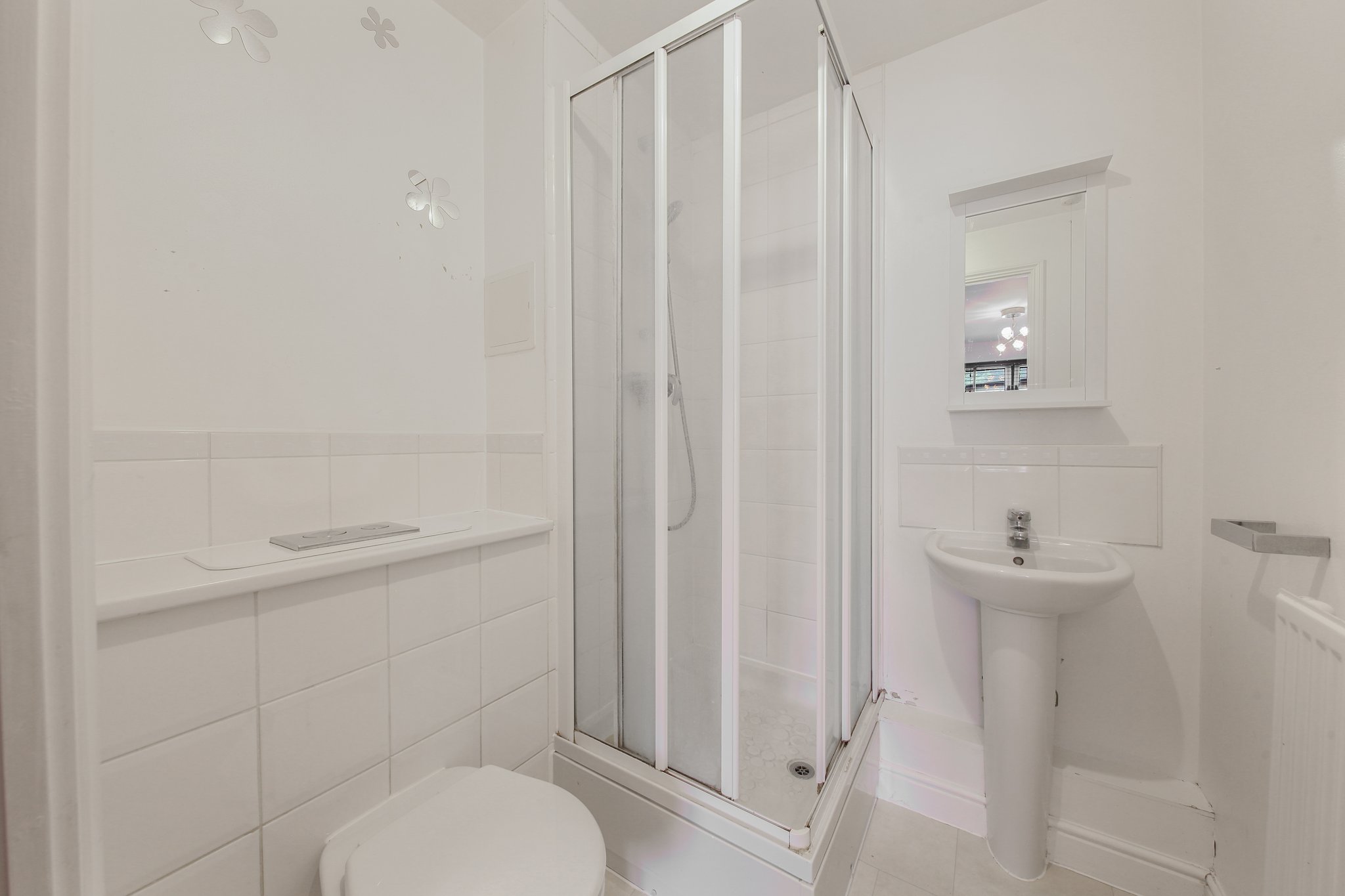 Both bedrooms are generous doubles, including a principal suite complete with a sleek, contemporary en-suite shower room. A second modern bathroom serves guests or sharers with ease.