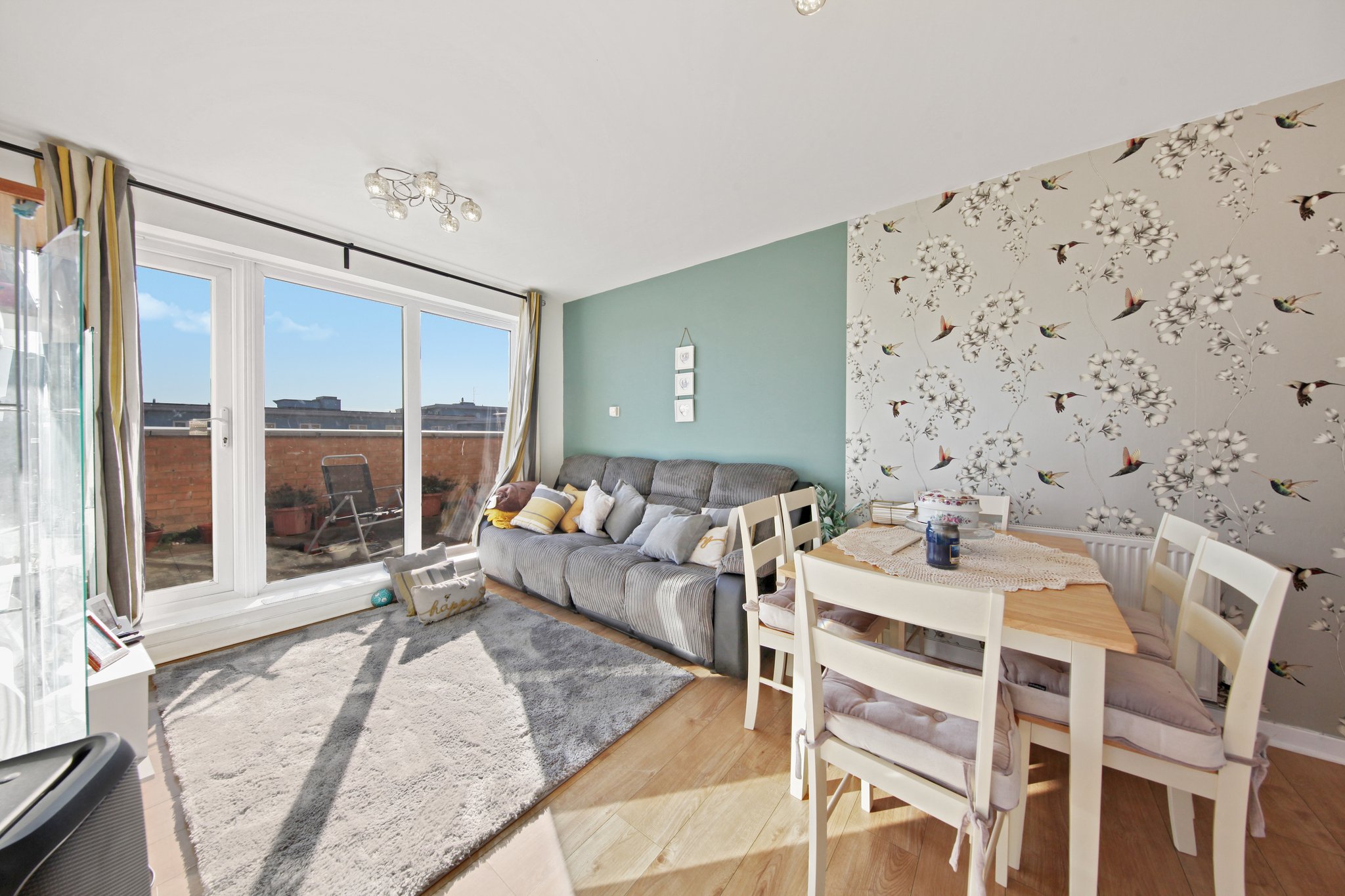 • Bright, open-plan living area with seamless flow into a contemporary fitted kitchen