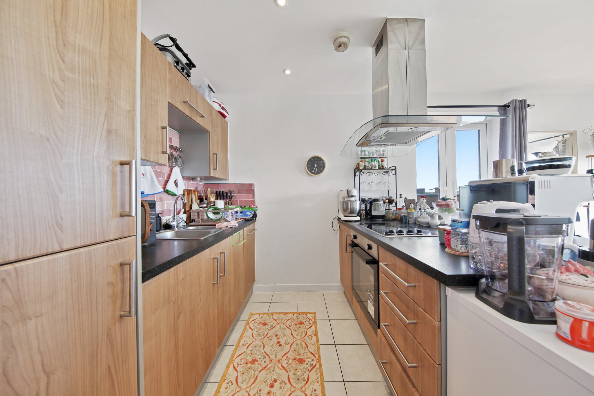 Step inside to discover a bright, open-plan living space where the reception area flows effortlessly into a contemporary fitted kitchen, perfect for both relaxed evenings and entertaining guests. Floor-to-ceiling light and clean, modern finishes create an inviting atmosphere throughout.